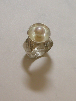 Gini Rollins began working in metal and making jewelry in 1994, after spending 25 years as a fiber artist. As a result of her work with fiber media, she finds textures particularly intriguing and incorporates them into her current work with metal. Gini’s work reflects her philosophy of life. Life should be simple in form but very rich in texture. She prefers to work with simple architectural forms and surface textures. Some work uses colored stones while other work relies on the beauty and simplicity of the silver and gold metal itself. The contrast of smooth metal and the texture of non-precious materials such as river rock or slate are also of interest. The artist continues to take classes and workshops to improve her knowledge and skills. “Learning something new is the most interesting part of life – it keeps life exciting. I’m so fortunate to be able to do what I love most – making jewelry. Life doesn’t get much better than this!”