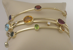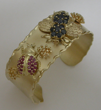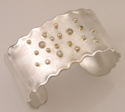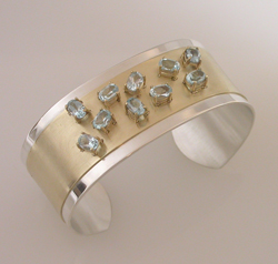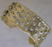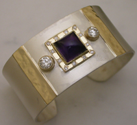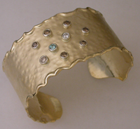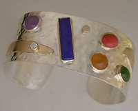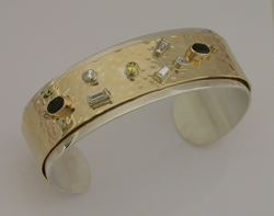 Sterling hammered cuff with 18kyg, diamond and various stones--Commissioned