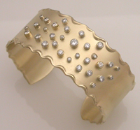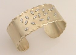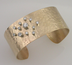 14kyg hammered and melted edge cuff w/ diamonds--Commissioned
