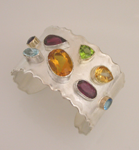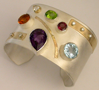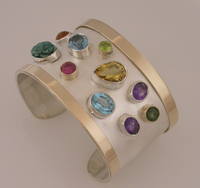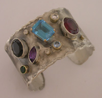Silver cuff with various stones.