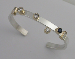 Sterling cuff with various stones, diamonds and 14kyg accents