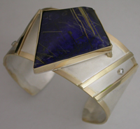 Sterling silver with 18kyg accents and diamonds, Rutilated Quartz on Lapis--Commissioned