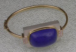 14kyg bracelet,sterling, Lapis and diamonds.