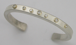 Sterling and diamonds in 14kg bezels.