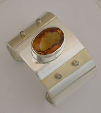 Sterling cuff with 14kyg accents, champagne diamonds and 33ct citrine.