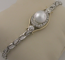 old watch w/ South Sea pearl and added 14k yellow gold accents