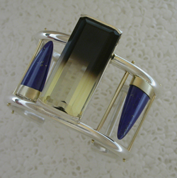 Bi-color Citrine, Lapis, sterling silver and 14ky gold.
